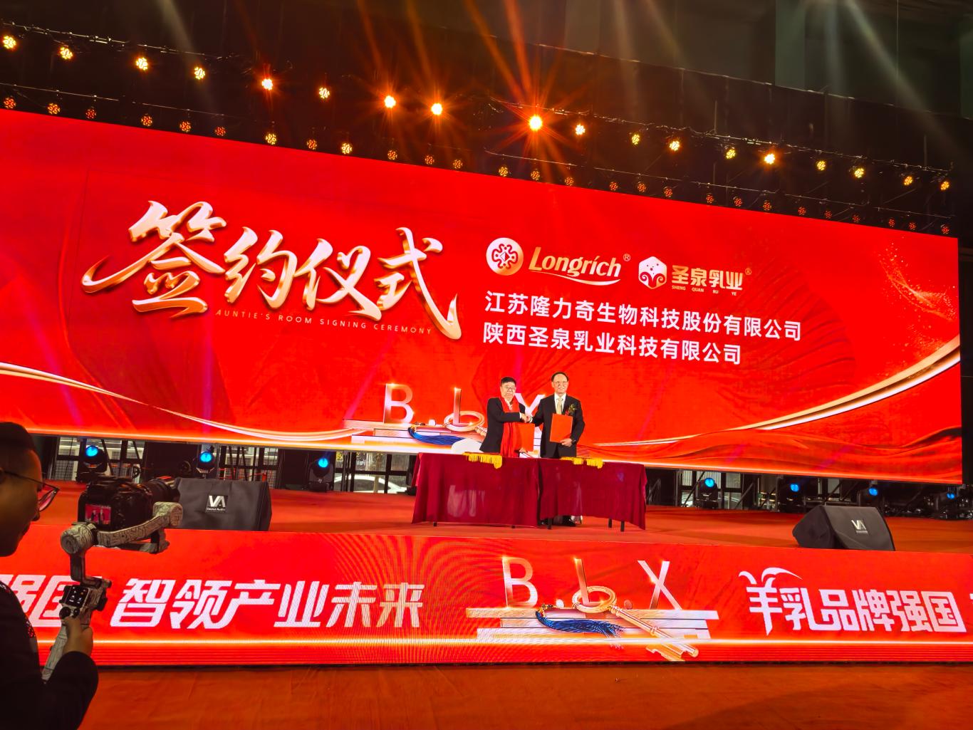 凭借备受国内外高度重视第32届杨凌农高会和第五届国际奶羊工业高质量开展大会成功举行的微弱春风,由陕西省乳品工业协会主办,江苏隆力奇生物科技股份有限公司和陕西圣泉乳业科技有限公司在杨凌网球中心一起承办了“羊乳品牌强国,智领工业未来”中外专家论坛暨新质配方羊奶产品推介会。   有6500多名来自全国各地的羊奶经销商和消费的人参加了本次推介会,陕西省乳品工业协会荣誉会长郑子国高级工程师、协会副会长张富新教授、副秘书长张琦秘书长到会大会,郑会长和江苏隆力奇生物科技股份有限公司董事长徐之伟先生、陕西圣泉乳业科技有限公司董事长胡智教授、国际山羊协会原主席代表协会为大会致辞,西北农林科技大学曹斌云教授以遍及全民喝羊奶,健旺一切我国人为题做科普陈述,陕西省商场局向军处长以强化羊乳产品质量安全,促进陕西千亿羊乳高质量开展为题做专题陈述,两位90多岁的羊奶长命老人在大会上共享了喝羊奶促进健康长命的经历,在本次推介会产生了轰动效应。   在推介会上陕西圣泉乳业科技有限公司和江苏隆力奇生物科技股份有限公司签订了5亿元的产销订单,陕西省乳品工业协会别离颁发颁发江苏隆力奇生物科技股份有限公司倍菜鲜品牌”的元宝枫益生菌多肽羊乳粉产品质量金奖;江苏隆力奇生物科技股份有限公司倍菜鲜品牌”的白云豆提取物乳酸菌运动营养食品配方立异金奖;陕西圣泉乳业科技有限公司“羙樂玺”品牌有机纯羊奶粉获产品质量金奖,陕西乳品工业协会还颁发孙建、赵娟、王世桂“羊乳商品商场开发杰出贡献奖”。   在第五届国际奶羊工业高质量开展大会开形式,江苏隆力奇生物科技股份有限公司与陕西圣泉乳业和陕西博铃乳业还签订了10亿元的产销订单,成为大会助推陕西千亿羊乳工业的一张靓丽手刺。   圣泉乳业、隆力奇等企业一起举行本次6500人羊乳品牌推介会,关于强化陕西羊乳产品的产销对接,实现以销促产,以产富民的方针,助推陕西千亿羊乳工业的高水平质量的开展,提高公司的知名度与影响力具有巨大的推进效果。